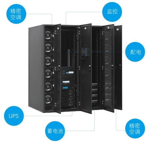 ●一體化集成小型模塊化數據中心,集成了IT主機柜(集成UPS、配電、監(jiān)控)、精密空調、蓄電池柜