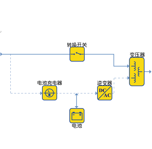 ? ? ? 后備式-鐵磁共振式UPS系統(tǒng)常被視為在線裝置,即使該類設備具有轉(zhuǎn)換開關(guān),逆變器在后備式模式下工作,并且在交流電源出現(xiàn)故障時表現(xiàn)出了轉(zhuǎn)換特征。